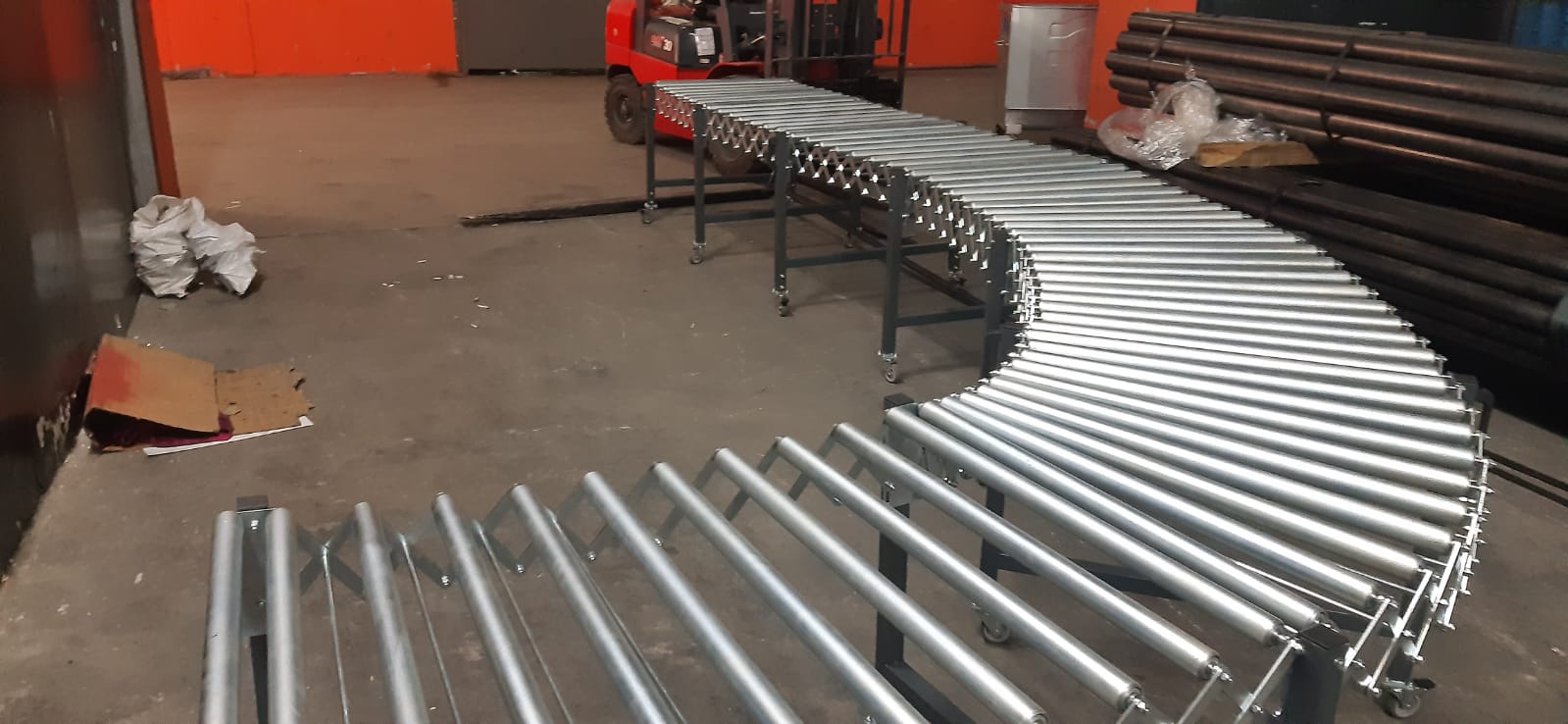 - Akordiyon Konveyörler tamamen Galvanizli, Demir Rulolu, Plastik Rulolu, Kauçuk Kaplı Rulolu veya Plastik Makaralı olarak imal edilirler.