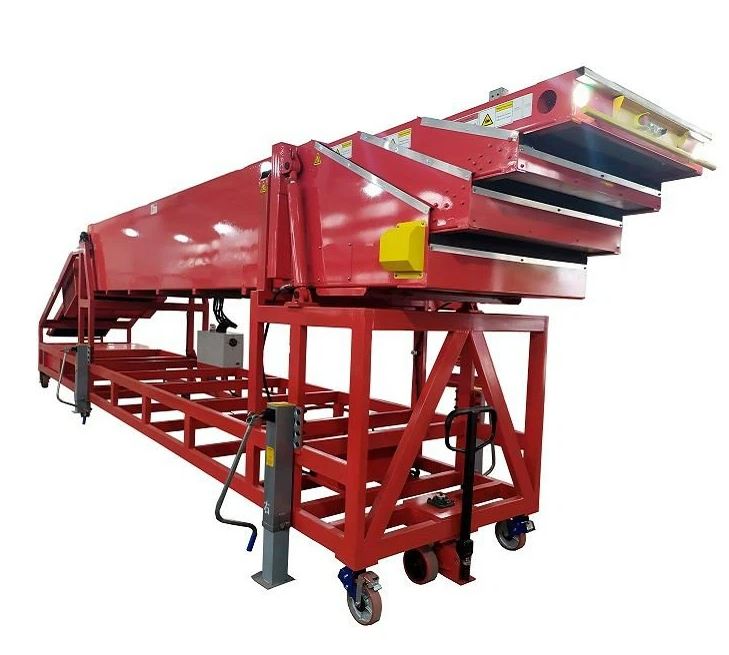 Mobil Liftli Konveyör, depo, liman, havaalanı, rıhtım vb. yerlerdeki römork, kamyonet, kamyon ve konteynırların içine ve dışına malları otomatik olarak yüklemek veya boşaltmak için yaygın olarak kullanılır.